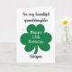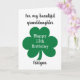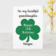 A personalised 13th birthday St. Patrick's Day card featuring a cloverleaf on the front. You will be able to easily personalise the front with the birthday recipient's details. The inside card message can also be personalised. This personalised St. Patrick's Day birthday card would make a unique card keepsake for your granddaughter, grandson and more.