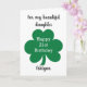 A personalised 21st birthday St. Patrick's Day card featuring a cloverleaf on the front. You will be able to easily personalise the front with the birthday recipient's details. The inside card message can also be personalised. This personalised St. Patrick's Day birthday card would make a wonderful card keepsake for him or her.
