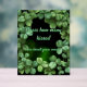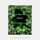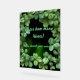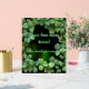 Green and black bokeh background with watercolor clovers around the edges for good luck. The text is white with green outline and a lighter green or black shadow, fully customisable for a baby shower for a mother to be.