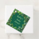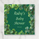 Green clovers painted around a green background. The text is white with green outline and a lighter green shadow as a fully customisable for a baby shower for a mother to be.