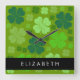 Green Clovers, Lucky Clovers, Your Name Square Wall Clock