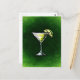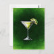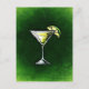 An elegant design of a cocktail in a cocktail glass against a bottle green, absinthe inspired background colour.