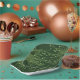 Green computer circuit board Bar Mitzvah paper plates. This non-traditional computer motherboard or electronics inspired design features circuitry as you'd see on an electronic circuit board and digital computer fonts. The colours are various shades of green from a light lime green to a deep forest green.
