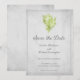 Elegant and simple Wedding save the date invite featuring a vintage conch shell against a grunge grey background. This design is a unique choice for announcing a modern wedding. Easy to customise with your wedding details. Click "Customise It" to find more personalisation options.