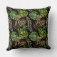 This bright and colourful pillow has a pattern of teal and green palm leaf images and copper fern images on a black background. Perfect for sun rooms or on patio furniture. Both sides of the pillow have the same image.