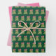 Green & Pink Coquette Bow Christmas Tree Wrapping Paper Sheets Set of 3