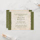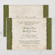 Invitation features green coloured trim on the sides with a frilly pattern and torn parchment paper texture in the middle for a rustic and vintage country wedding feel. Would be suitable for Christmas and holiday weddings and events!