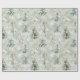 Green Cream Christmas Trees Snowflakes Wrapping Paper