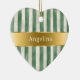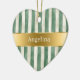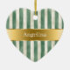 Green Cream White Stripes Gold Ribbon Christmas Ceramic Ornament