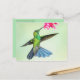Green-Crowned Brilliant Hummingbird & Pink Flower Postcard