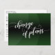 The background has been covered in a trio of green curves with a subtle black ombre overlay. Using a pretty script font with swirls and waves, I created a graphic that reads "change of plans". The reverse side includes template placeholders for your details with matching accents featuring the calligraphy font. Use these template fields to add your personal details and change my draught wording to suit your needs and situation. Other pieces are available in the set and I'm happy to create additional variations upon request. // 99 //