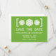 This D20 Dice Gamer Save the Date Announcement in lime green is perfect for the nerdy couple who fell in love over a shared interest in role playing games and would like to announce their wedding displaying this part of their personalities. This offbeat design features a simple and minimalist trio of twenty-sided die. Easy to customise, simply add your wedding details in the text fields provided. Click "Customise It" to find more personalisation options.