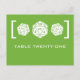 Green D20 Dice Gamer Table Number Postcard