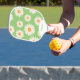 Custom pickleball paddle featuring a classic green daisy floral pattern with an elegant retro aesthetic, perfect for sporty spring and summer gifts.