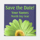 This stylised green daisy flower "save the date" magnet makes the perfect accent for your wedding, shower or party invitations. Click on "customise it" to select a different background colour or add text.