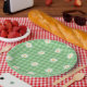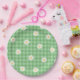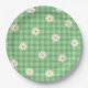 Green Daisy Plaid Gingham Check Flower Pattern Paper Plate