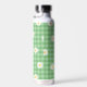 Green Daisy Plaid Gingham Check Flower Pattern Water Bottle
