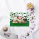 White and green damask pattern, your greeting, names and your photo bordered in real gold, silver or rose gold are featured on these holiday photo cards. Select Matte for heaviest paper and High Definition for best photo quality. Be sure to double-check your order before adding it to your cart as what you see on the screen is what will be printed. The Live Design Service can help you with your design layout if needed.