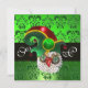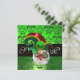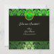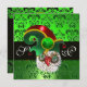 GREEN DAMASK ,JEWEL OWL WITH ELF HAT MONOGRAM INVITATION