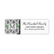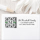 Trendy sage green, black and white damask pattern with an elegant monogram initial. Elegant monogrammed address labels that look beautiful as wedding address labels, family address labels, personalised address labels, and graduation return address labels and current address labels.