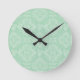 Green damask pattern round clock
