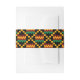 Belly invitation bands with green, dark red, and yellow gold on black Kente Cloth. Customisable. Classic and chic, the perfect belly invitation bands for your wedding invitations.