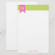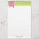 Green Diagonal Stripes Pattern and Pink Monogram Stationery