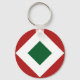 Green Diamond, Bold White Border on Red Key Ring