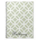 Write down notes with an amusing Green Diamond Pattern Personalised Spiral Notebook. Notebook design features a modern diamond and circle pattern and area you can personalise with your name against a light teal background. Additional gifts available with this design as well as a variety of colours.