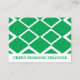 Green Diamond Triangle Geometric Pattern Business Card. Fully Customisable. Green diamond triangle pattern on white background. Modern geometric pattern. Personalise with your details.