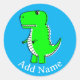 Green Dinosaur Drawing Custom Name Classic Round Sticker