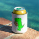 Green Dinosaur Loves Football Can Cooler