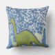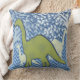 Green Dinosaur on Zigzag Chevron - Blue and White Cushion
