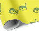 Green dinosaurs on yellow pattern wrapping paper