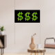 The symbol of money, currency and cash, the dollar sign, combines the letter S with two vertical lines. The Green Dollar Sign graphic is a hand painted dollar sign with visible brush strokes giving the symbol that 60s pop art look. The green dollar sign has a shadow in a shade of red. Fill your bank account with lots of dough, bread or moolah and choose the Green Dollar Sign design.