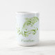 Enjoy your morning coffee with a Green Dolphin Personalised Coffee Mug. Mug design features a vibrant metallic dolphin against a muted seascape adorned elegant scrolls with an area to personalise with your name. Additional gift items available with this design as well as a variety of colours.