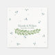Chic wedding napkins done in white, with tone tone green dots and watercolor graphics of a green fern frond. Personalise with the bride and groom's names and wedding date. Matching products are available.