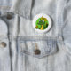 Button on with an illustration of head of a cute little green dragon holding a golden egg, design in green circle, cute fantasy / fairy-tale design for kids by Maxiharmony