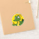 Vinyl Sticker ith an illustration of head of a cute little green dragon holding a golden egg, design in yellow circle, cute fantasy / fairy-tale design for kids by Maxiharmony