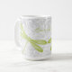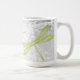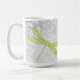 Enjoy your morning coffee with a Green Dragonfly Personalised Coffee Mug. Mug design features a colourful dragonfly, a soft white leafy vine against a light grey grunge damask background with an area to personalise with your name. Additional gift items available with this design as well as a variety of colours.