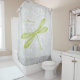 Add an elegant touch to your bath with a Green Dragonfly Personalised Shower Curtain. Shower curtain design features a colourful dragonfly, a soft white leafy vine against a light grey grunge damask background with an area to personalise with your name. Additional gift items available with this design as well as a variety of colours.