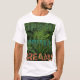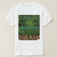 The "Green Dreams" t-shirt features a vibrant, multi-coloured typography set against a lush, natural backdrop. The text is bold and eye-catching, while the background showcases a close-up of green foliage, creating a harmonious blend of nature and design. The overall aesthetic conveys a sense of environmental awareness and optimism.