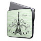 Protect your laptop while you're on the go with a Green Eiffel Tower Flourish Laptop Sleeve. Laptop sleeve design features a the Eiffel Tower adorned with elegant flourishes against a wavy green background. Additional colours and gift items available with this design as well. This item may be personalised with a name or monogram of your choosing. Please contact me if you would like to add personalisation.