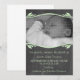 Sweet and whimsical Elegant Chalkboard Photo Baby Announcement in mint green featuring a simple vine and leaf design framing the photo area. Customise this lovely announcement with a photo of your bundle of joy and all the exciting details! Click "Customise It" to find more personalisation options.