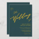 Green Modern Gold Script All In One Minimalist Wedding Invitation Card. Celebrate your special day with this elegant and beautiful wedding invitation card to beautify your special occasion. All the texts are pre-arranged for you to personalise easily and quickly with your own details. If you need further customisation or matching items, please email alldaybreakfastzazzle@gmail.com – we would love to help.