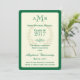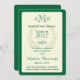 This formal elegant graduation announcement features a green border and monogram initials at the top. The ornate calligraphy style embellishment in the centre and laurel watermark gives it a touch of class. Personalise these announcements with your graduation information. There is also plenty of room on the back for more information. This design works best with rounded corners, for rectangle or square please see the following:
