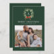 Green Elegant Monogram Wreath Christmas Two Photo Holiday Card