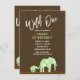Green Elephants Brown Modern WILD ONE 1ST Birthday Invitation
