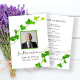 Remember your loved one and celebrate their life with the pretty Green English Ivy Vine Foliage Funeral Service Program. This elegant custom greenery memorial service timeline features a botanical photograph of green English ivy foliage leaves with a white background. Customise it with a picture of the deceased, personal details and order of ceremony of their celebration of life tribute church service.