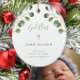 Green eucalyptus foliage baby baptism photo ceramic ornament